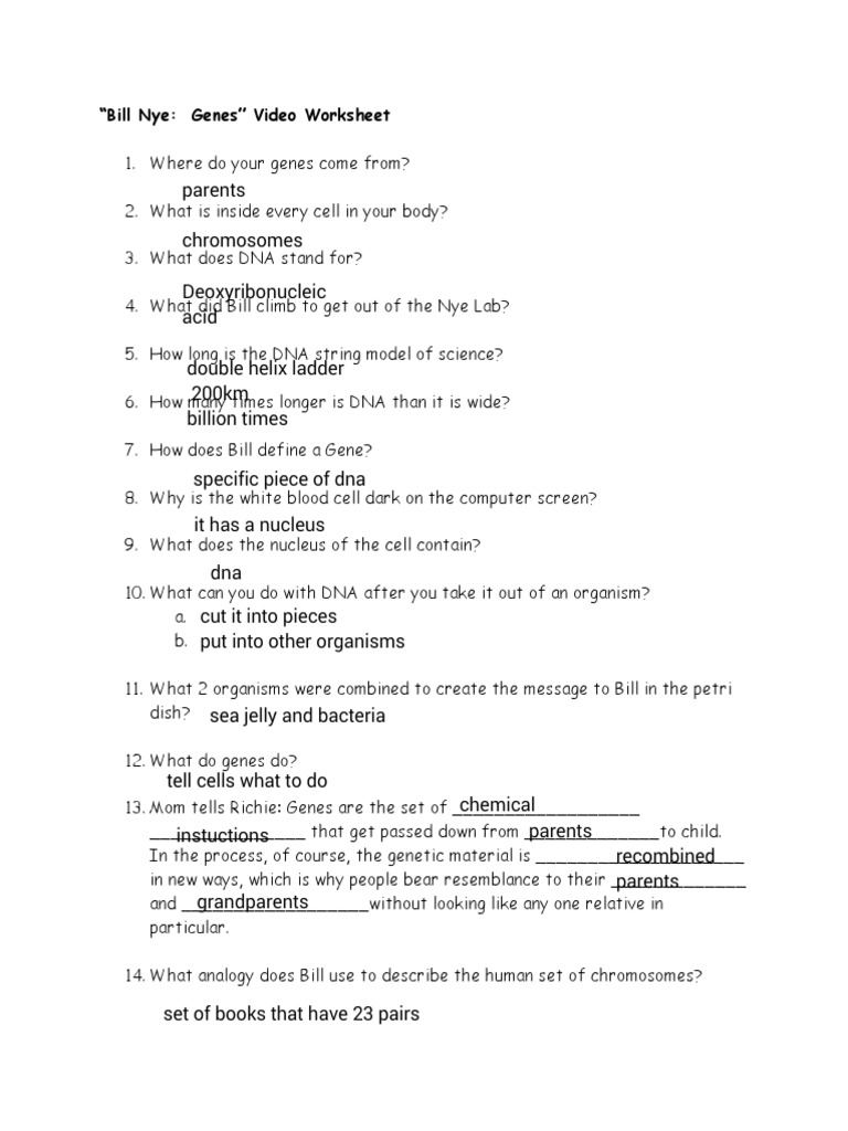 How long is the dna string model of science? Once you find your worksheet, click on. A collection of 20 bill nye the science guy video worksheets including the answer key for each. Students fill in blanks and answer multiple choice questions that folllow the video. Real time with bill maher: Cells worksheet provides questions for students to answer during the movie / film | bill nye explores cells and cell function. How many times longer is dna than it is wide? Simply invite your students to view the form and the link to the video is in the. Found worksheet you are looking for? The most secure digital platform to get legally binding, electronically signed documents in just a few seconds. With worksheets(sheet1).cells.font.name = arial.size = 8endwith. In this cells worksheet, students watch a video titled bill nye: William sanford nye (born november 27, 1955), popularly known as bill nye the science guy, is an american mechanical engineer, science communicator, and television presenter.