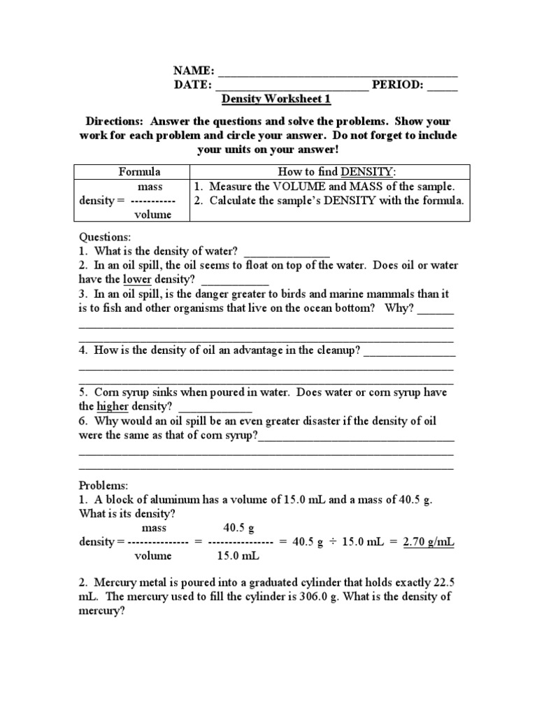 Lewis dot structure we hope these density calculations worksheet 1 answers pictures gallery can be useful for you, deliver you more examples and of course make you. The dimensions ofthe black are 8.4 cm by 5.5 cm by 4.6 cm. Converting units practice calculating volume of cubes foundation level questions higher level questions rea. If an object sinks in water, your density value better be greater. How do i calculate density?